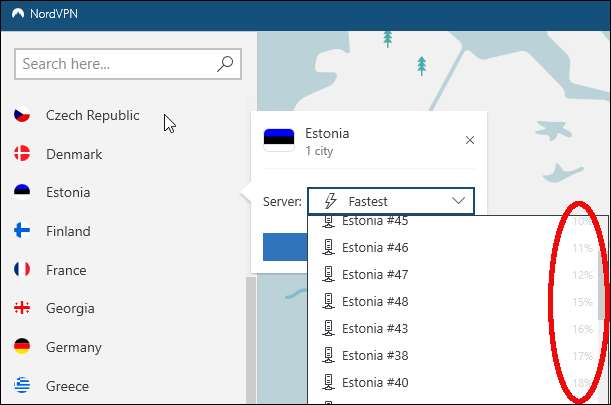 Другой вариант - выбрать сервер, который менее занят. Некоторые услуги VPN, как Nordvpn. а также ВПНАРЕА Покажите нагрузку на сервере, что делает это намного проще. Даже если ваша услуга выбора не поддерживает это, хотя вы обычно можете сказать, является ли это проблемой. Если в противном случае быстрый сервер внезапно замедляется, то нагрузка на сервер, вероятно, виноват.
