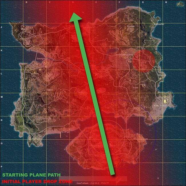 С самолета можно отойти на полтора-два километра (квадратов), прежде чем вы упадете на землю, в зависимости от того, когда вы развернете парашют. Итак, в начале матча распределение игроков будет выглядеть примерно так:
