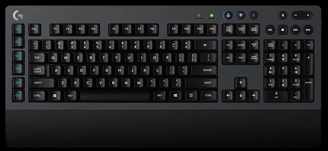 Logitech и раньше погружалась в бассейн с механической клавиатурой, но G613 за 150 долларов это их первая беспроводная модель… и первая «игровая» беспроводная клавиатура, которую я когда-либо видел. Он поставляется с выбором стандартного Bluetooth или беспроводного USB-ключа Logitech Lightspeed с заявленным временем отклика в одну миллисекунду. К сожалению, такая гибкость подключения означает некоторую жесткость в других областях: он поставляется только с полноразмерной компоновкой (плюс дополнительные программируемые макроклавиши) и запатентованными переключателями Logitech Romer-G, которые несовместимы с дополнительными клавишами. У него есть дополнительные медиа и клавиши подключения, но без подсветки для экономии заряда батареи, которая, по словам Logitech, может работать до 18 месяцев на двух АА.