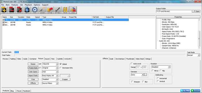 Media Encoder HQ поддерживает преобразование локальных и размещенных файлов. Однако использование URL-адресов с веб-сайтов потокового видео не работает. Для локальных файлов процесс преобразования выполняется довольно быстро благодаря процессу перекодирования с ускорением графического процессора.