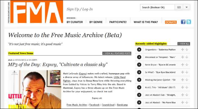 В Бесплатный Музыкальный Архив (FMA) представляет собой интерактивную библиотеку высококачественных, бесплатных легальных аудиозаписей. Библиотека FMA находится в свободном доступе для общественности. Вам не нужно регистрироваться для загрузки музыки, но, если вы это сделаете, вы можете создавать свои собственные списки воспроизведения, чтобы отслеживать музыку, которую вы обнаруживаете, и участвовать в обсуждениях.