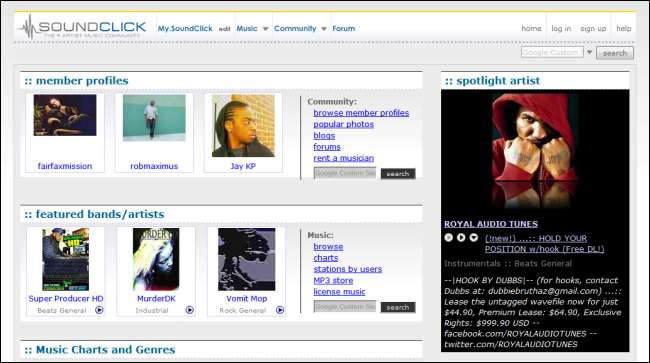 SoundClick - это бесплатное музыкальное сообщество, в котором представлены подписанные и неподписанные группы и самые современные инструменты для социальных сетей. Они предлагают бесплатные страницы профилей участников, загрузки mp3, потоковое аудио и видео, музыкальные чарты, пользовательские радиостанции, собственный музыкальный магазин, доски объявлений и многое другое.