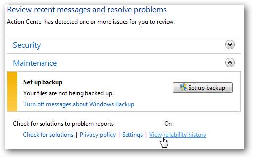 В разделе "Параметры обслуживания" нажмите Просмотр истории надежности .