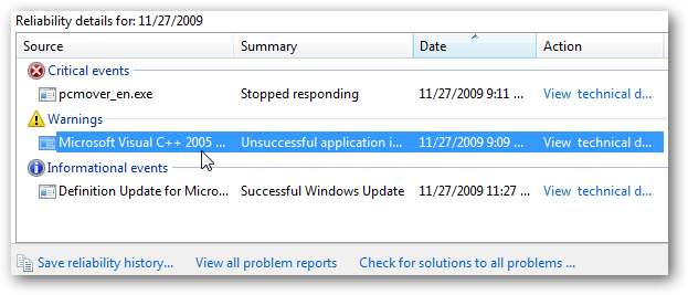 Он также позволяет просматривать все отчеты о проблемах, в которых будут отображаться только ошибки компьютера. Другие события, такие как установка программного обеспечения, не отображаются.