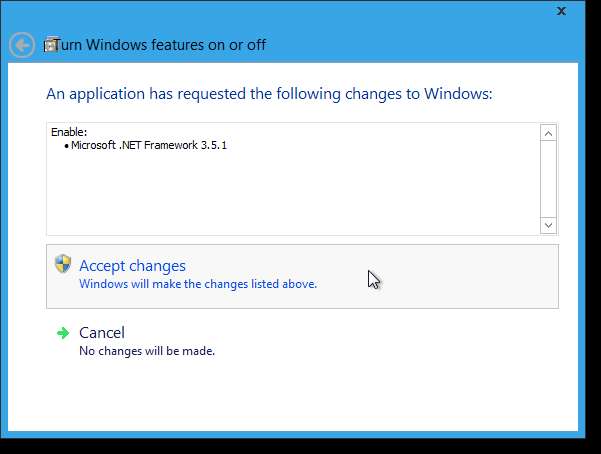 Windows 8 Start Menu Toggle - это портативная программа, которую не нужно устанавливать. Однако при первом запуске программа предложит вам установить Microsoft .NET Framework 3.5.1, если она еще не установлена. Нажмите Принять изменения, чтобы продолжить установку.