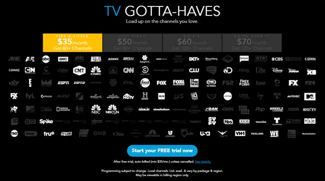 Он не включает в себя ту кучу каналов, которую вы получите с их традиционными планами, но я чувствую, что это хороший пример качества, а не количества - здесь собрано большинство громких имен, так что вы должны получить все, что захотите. на самом деле хочу посмотреть, в зависимости от вашего плана.