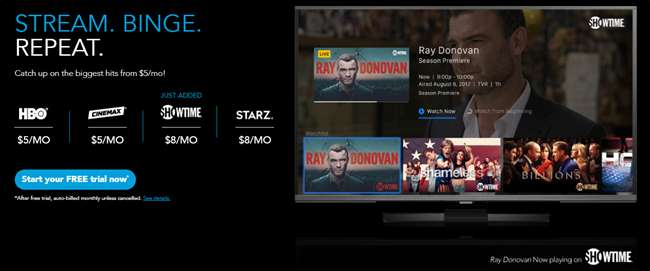 - HBO (5 долларов в месяц) : Добавляет HBO Go, East, Family Easy, Latino, а также доступ к библиотеке HBO по запросу.