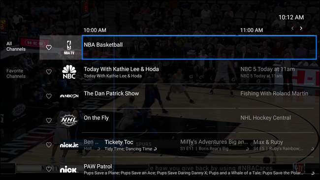 По сути, это похоже на руководство, которое вы привыкли видеть, потому что ... ну, это так. Вы, конечно, можете просматривать по времени и каналам, но вы также можете «добавить в избранное» каналы, используя сердечко.