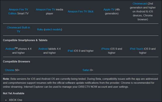 Что касается поддержки устройств, DirecTV Now доступен на: