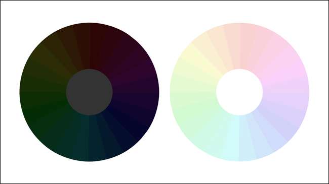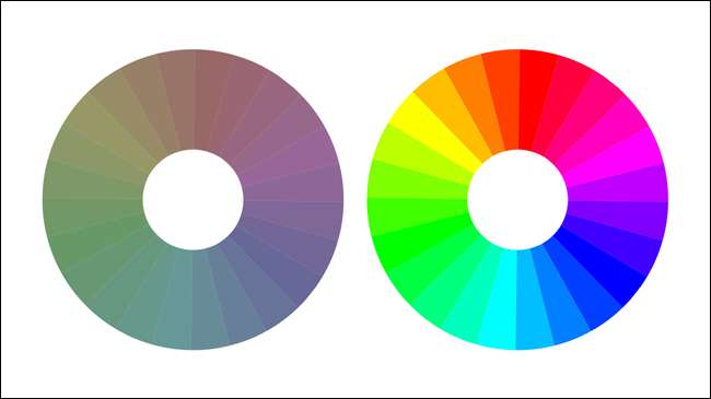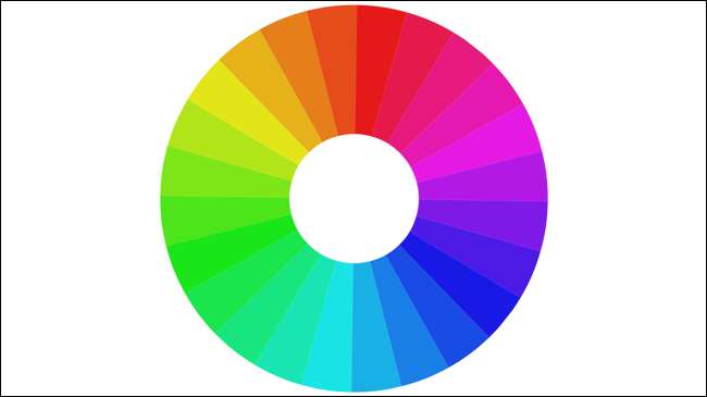 Hue довольно интуитивно понятен: это базовый цвет. HUe обычно описывается с использованием цветного колеса, которое идет от красного (0º) через желтый (60º), зеленый (120º), Cyan (180º), синий (240º), пурпурный (300º) и обратно в красный (360º).
