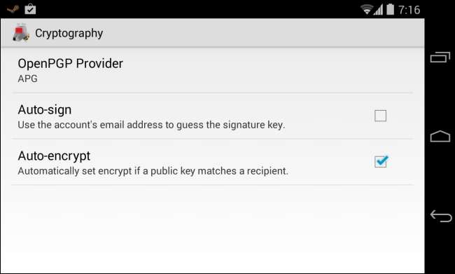 Эта функция также не интегрирована в связанные мобильные приложения. Конечно, вы можете получить доступ к этому зашифрованному сообщению электронной почты в своем веб-браузере с расширением, но как вы читаете его на своем смартфоне? Для этого вам понадобится специальное приложение - вы не можете просто использовать приложение Gmail или стандартное приложение Mail, входящее в комплект поставки телефона. K-9 Mail предлагает поддержку PGP на Android, если у вас также есть ПНГ установлен, например.