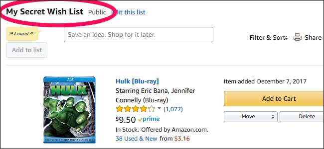 Если у вас есть списки желаний, которые вы хотите сделать общедоступными, но скрыть от своего профиля, вы тоже можете это сделать. Посетите свой профиль, наведя курсор на «Аккаунт и списки» на Амазон.ком и щелкнув «Ваша учетная запись».
