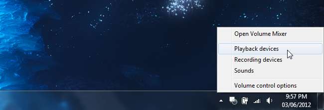 För att aktivera ljudstyrkautjämnaren högerklickar du på högtalarikonen i systemfältet och väljer Uppspelningsenheter.