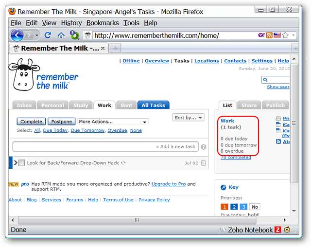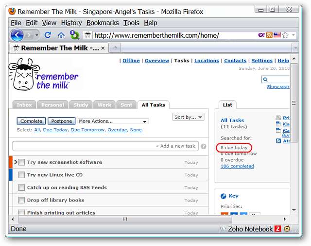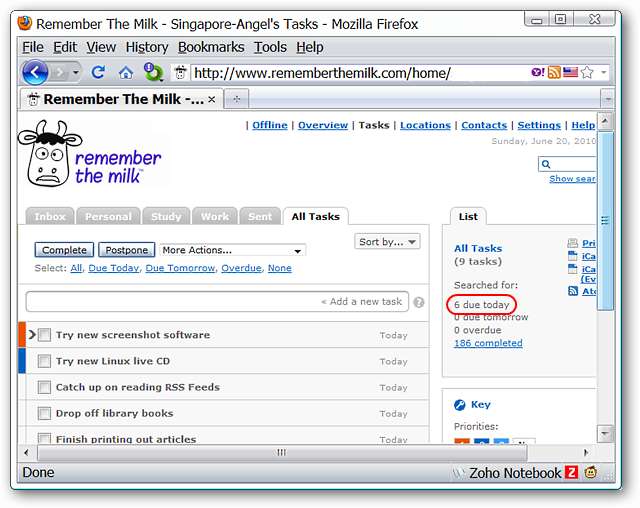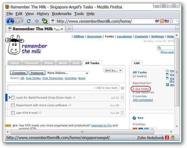Nu börjar det roliga. För vårt exempel valde vi att visa Alla uppgifter fliken men manuset visar lämplig grafik för varje flik baserat på antalet uppgifter som ska betalas. Om du inte har några uppgifter eller bara en på grund av är RTM Cow nöjd.