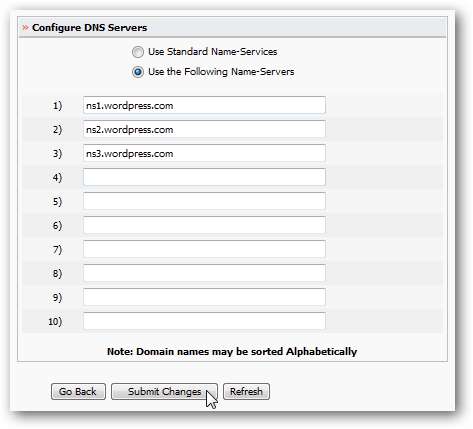 Om den här domänen är en domän du äger kan du mappa den till WordPress.com. Logga in på ditt domänregistrarkonto och byt namnserver till: