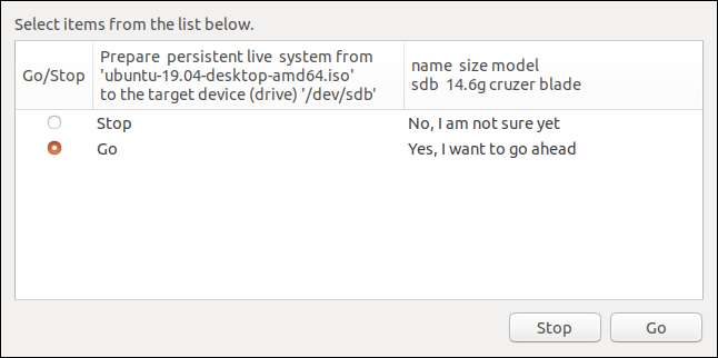 För att vara tydlig är detta den sista punkten där du kan backa. Om du är säker på att du vill fortsätta, välj alternativknappen "Gå" och klicka på knappen "Gå".