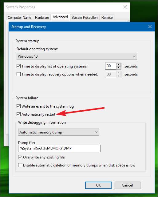 Som standard startar Windows automatiskt om datorn när den stöter på en blå dödsskärm.