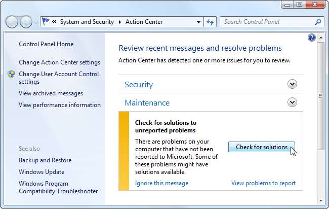 I Windows 7, 8 och 10 kan du felsöka blå skärminformation med hjälp av Action Center. I Windows 7, gå till Kontrollpanelen> System och säkerhet. I Windows 8 och 10, gå till Kontrollpanelen> Säkerhet och underhåll. I avsnittet "Underhåll" kan du söka efter lösningar på befintliga problem.