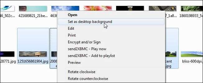 I stället för att använda en tredjepartsapplikation för att rotera din tapet skickade HTG-läsaren Abhijeet oss en länk till hans handledning om att ställa in det mest döda enkla tapetrotationssystemet du kan tänka dig. Om du väljer någon bildgrupp och högerklickar på dem kan du välja ”Ange som skrivbordsbakgrund”. Om du har mer än en bild ställer den automatiskt in dem att rotera en gång om dagen (för snabbare rotation, gå till bildspelsinställningarna i skrivbordsbakgrundsmenyn). Ganska ett smart och underutnyttjat sätt att rotera dina bakgrundsbilder utan extra omkostnader för ett tredjepartsverktyg. Tack för att du delar Abhijeet!