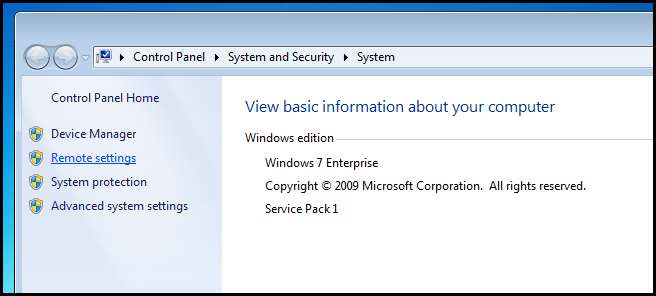 När dialogrutan Systeminformation öppnas klickar du på länken Fjärrinställningar på vänster sida.