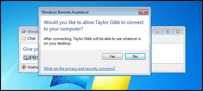 Värden kommer sedan att bli tillfrågad om de vill tillåta mig att ansluta till deras maskin. I det här fallet vet jag vem som försöker ansluta och så kan jag klicka på Ja.