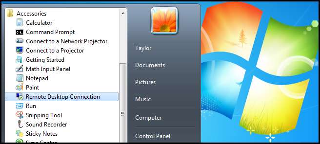 När du väl har aktiverat Remote Desktop på en dator är det väldigt enkelt att ansluta till det. För att göra det, öppna Start-menyn och expandera Tillbehör och klicka sedan på Fjärrskrivbordsanslutning.
