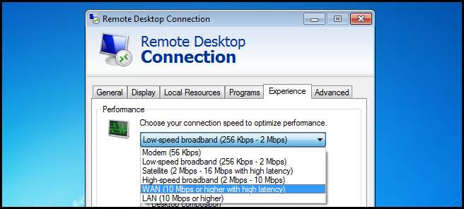 Byt sedan över till fliken Experience. Här kan du välja hastigheten på din anslutning, som bestämmer de optimala inställningarna för dig.
