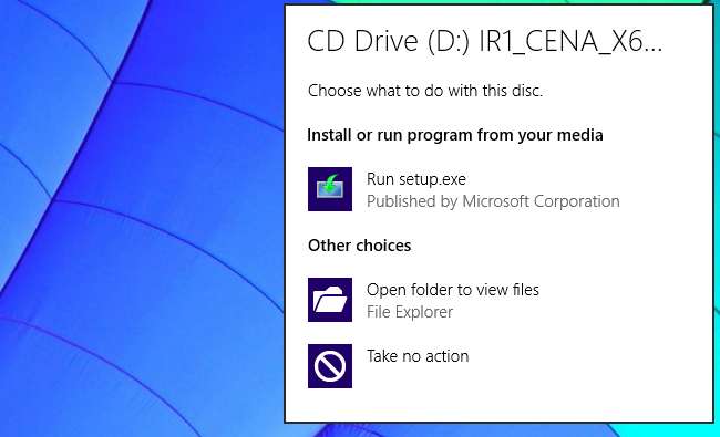 Windows XP förfinade den här funktionen med en “AutoPlay” -funktion. När du satte in en skiva, ett USB-minne eller en annan typ av flyttbar medieenhet kommer Windows att undersöka dess innehåll och föreslå åtgärder för dig. Om du till exempel sätter in ett SD-kort som innehåller foton från din digitalkamera, kommer det att rekommendera att du gör något som passar för bildfiler. Om en enhet har en autorun.inf-fil ser du ett alternativ som frågar om du också vill köra ett program automatiskt från enheten.