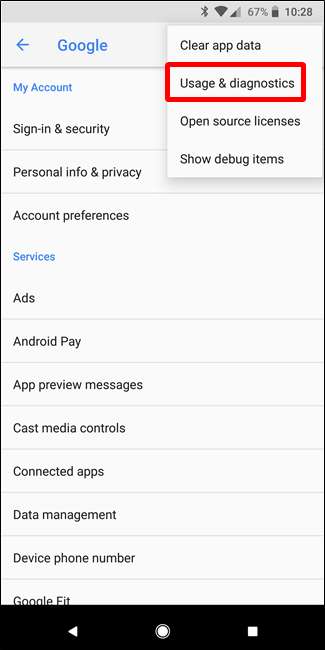 Naturligtvis handlar användnings- och diagnosfunktionen för att samla in nätverksdata ungefär mer än bara nätverksdata. Detta är ett mycket generaliserat datainsamlingsverktyg som hjälper Google att "förbättra produkter och tjänster för alla." Detta inkluderar din batterinivå, hur ofta appar öppnas och kvaliteten / längden på nätverksanslutningar för både Wi-Fi och Bluetooth.