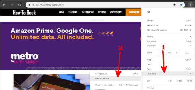 Håll muspekaren över menyn "Fler verktyg" och välj sedan "Skapa genväg".
