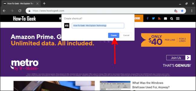 Ändra namnet på genvägen om du vill och klicka sedan på "Skapa".