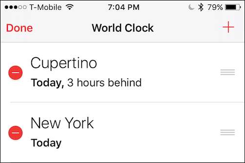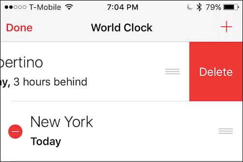 Du måste bekräfta dina avsikter genom att trycka på "Radera" -knappen som visas till höger om varje världsklockstad. Det raderas sedan.