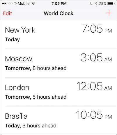Nu ser du att vi har lagt till några fler städer till våra världsklockor på vår iPhone.