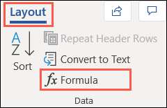 Sedan huvudet till fliken Layout som visas. Flytta till höger sida av bandet och klicka på "Formel" i datasektionen.