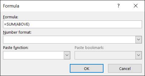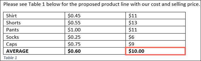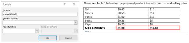 Liknande Excel, Word försöker upptäcka vad du försöker göra. Så kan du se en vanlig formel, som summa, befolkade och redo att gå.
