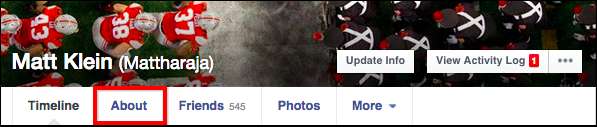 För att lägga till andra namn vill du klicka på "Om" längst upp på din tidslinje.