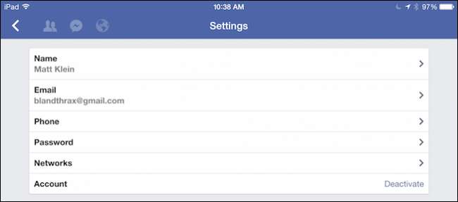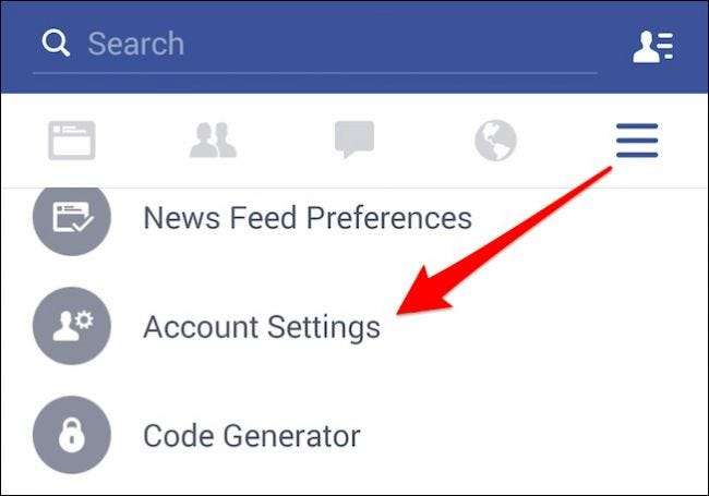 Tryck på de tre raderna i det övre högra hörnet med Android-appen, bläddra nedåt, tryck på "Kontoinställningar".