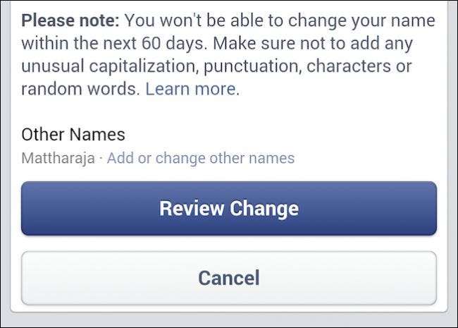 Förstå att andra namn är "alltid offentliga och hjälper människor att hitta dig på Facebook", så om din integritet är mycket viktig för dig, kanske det här alternativet inte är det bästa valet.