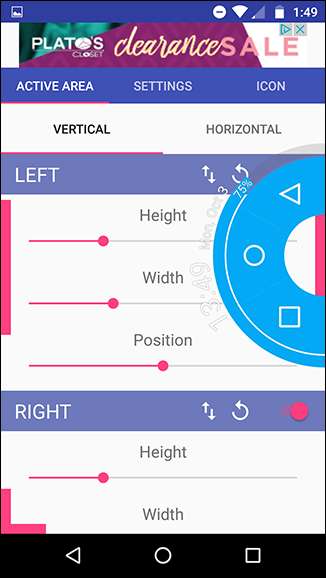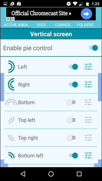 Med de små inställningsknapparna bredvid varje omkopplare kan du justera positionen och storleken på varje sektion. För att faktiskt justera vad som visas i pajkontrollerna, vill du svepa över till fliken Edge eller Corner.
