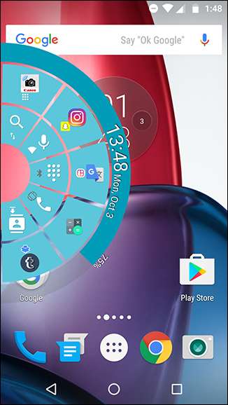 Nu när du är klar, är det dags att genomföra kontrollerna. Från vilken app eller skärm som helst bör du kunna svepa in från ditt valda avsnitt och släppa vilket alternativ du vill. För att hålla länge, håll bara fingret på alternativet tills det aktiveras.