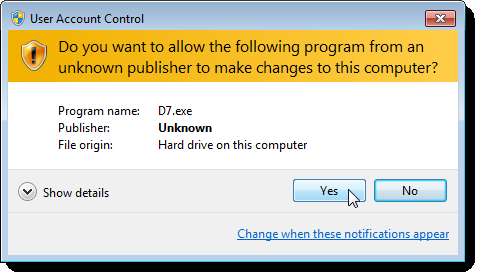 Om Användarkontokontroll dialogrutan visas, klicka Ja att fortsätta.