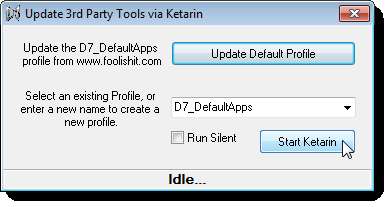 D7_DefaultApps ska visas i redigeringsrutan under knappen Uppdatera standardprofil. Klicka på Start Ketarin.