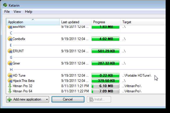 Uppdateringsförloppet för varje verktyg visas. När uppdateringarna är klara väljer du Avsluta från FIle-menyn för att stänga Ketarin.