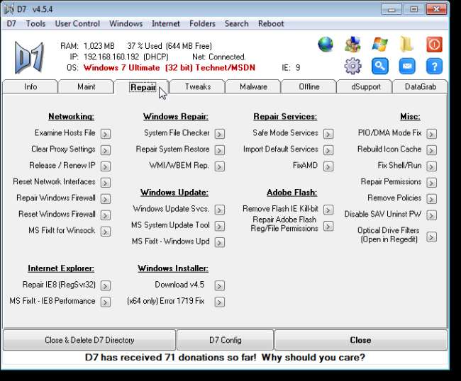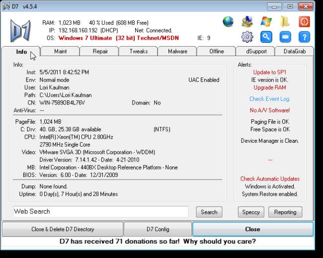 D7 är ett mycket användbart, gratis verktyg för att underhålla, reparera och finjustera Windows, hjälpa till att ta bort skadlig kod och säkerhetskopiera alla användarprofiler på din dator. Det kan hjälpa PC-tekniker att utföra många uppgifter.