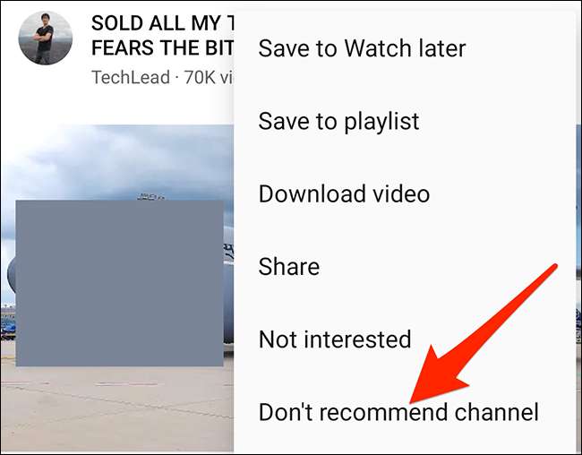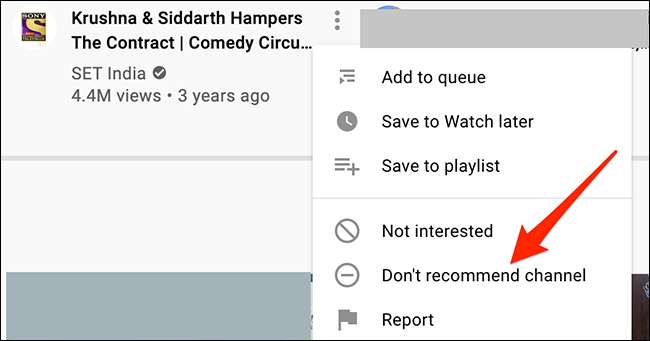 I menyn som öppnas när du klickar på de tre punkterna, välj ”Rekommendera inte Channel.”