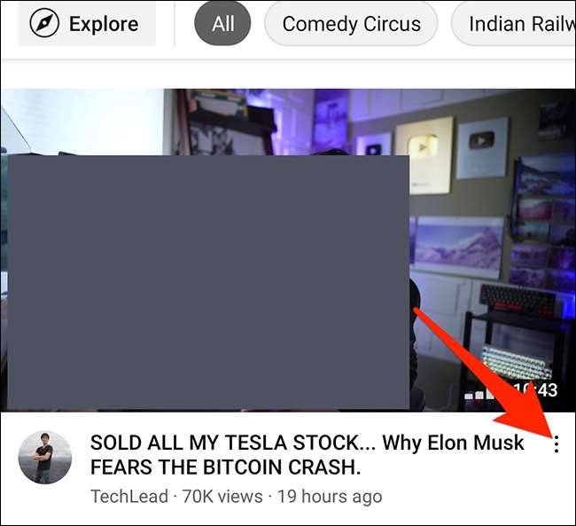 Rulla nedåt i listan över videoklipp. Hitta videon som kommer från den kanal du vill blockera. Sedan trycker du på tre punkter menyn bredvid videotiteln.