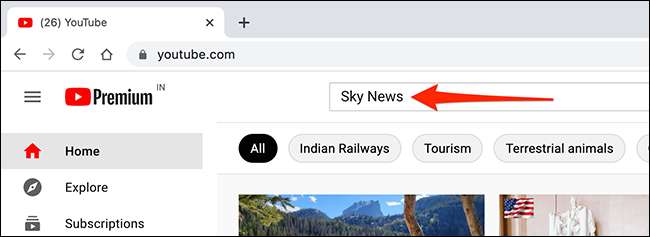 På platsen genom att klicka på sökrutan högst upp. Skriv kanalnamnet som du vill blockera och tryck på Enter.