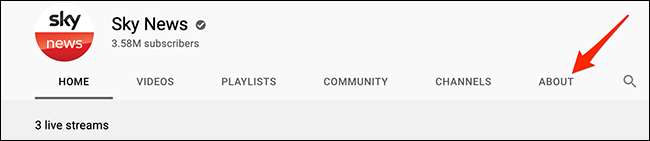 På kanalens sida, från listan över flikarna under kanalnamnet, klicka på ”Om” -fliken.