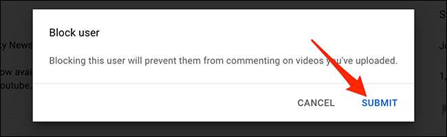 Och din valda kanal kommer nu att blockeras från att kommentera dina videoklipp.