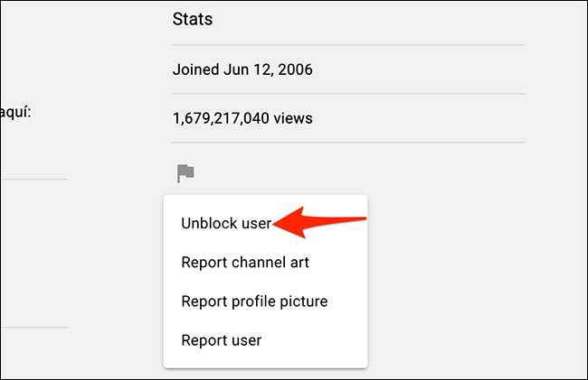 För att blockera en kanal, klicka på samma flaggikon och välj "Unblock User" från menyn. Klicka sedan på "Skicka" i prompten.